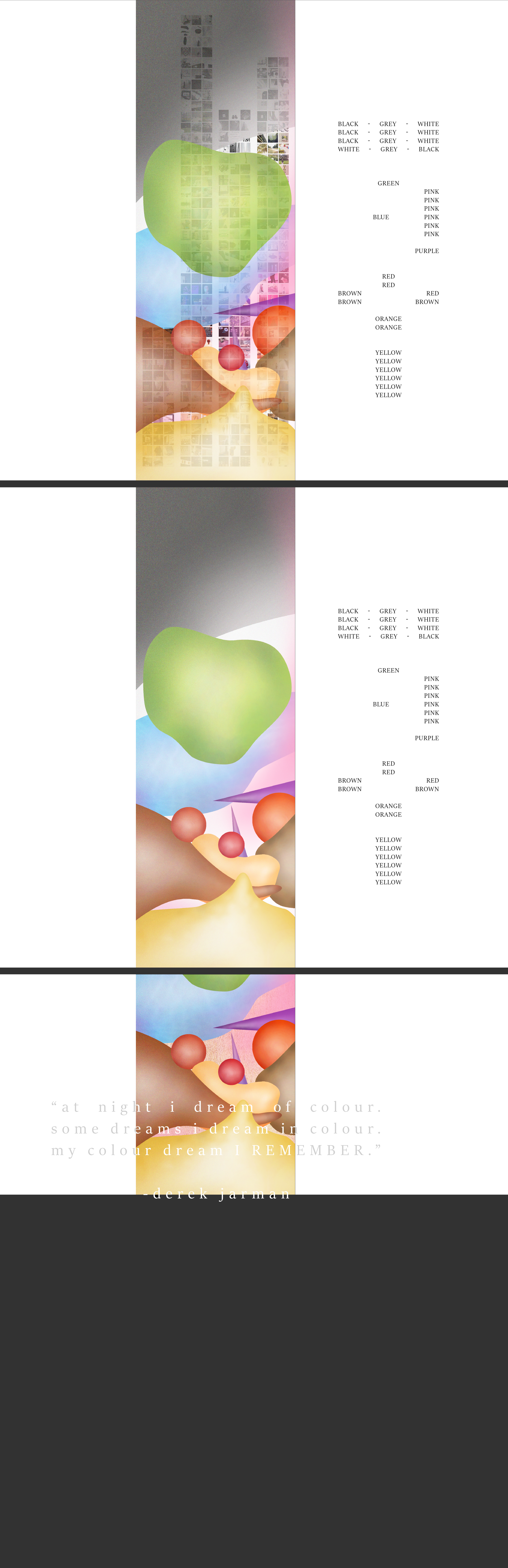 With an Instagram account ︎ic_amood, where a collection of photographs is arranged in the style of a looping color spectrum, thesis began as an analytical documentation of my personal experience of “synesthesia”, an extraordinary neurological and sensory condition defined as joined senses. The phenomenon comes in unique varieties for each synesthete; for me, my brain automatically associates things varying from objects, spaces, people, places to emotions with the sensory perception of colors.
